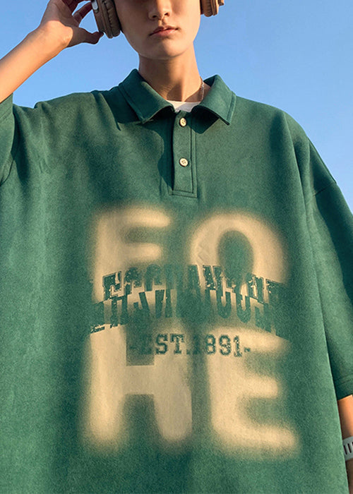 Sleeve New Green Cotton Letter Polo Half Shirt Men Patchwork