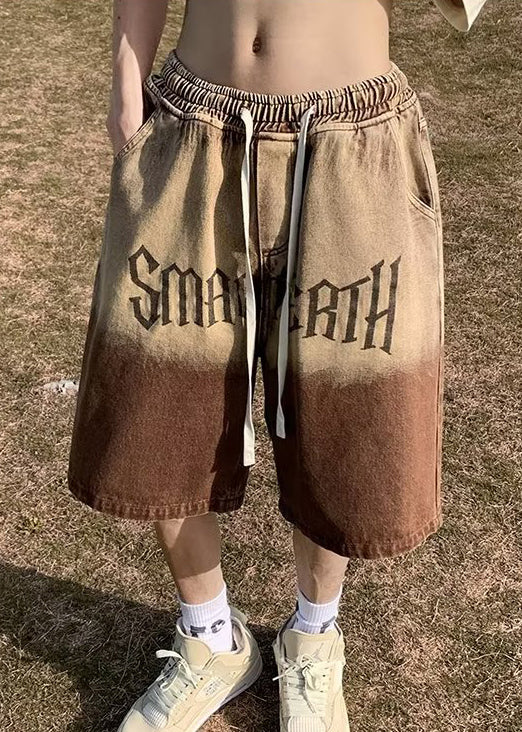 Shorts Vintage Denim Brown Print Pockets Color Gradient Men