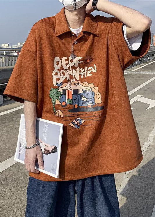 Polo Men Half Apricot Print French Cotton Sleeve Shirts Oversized