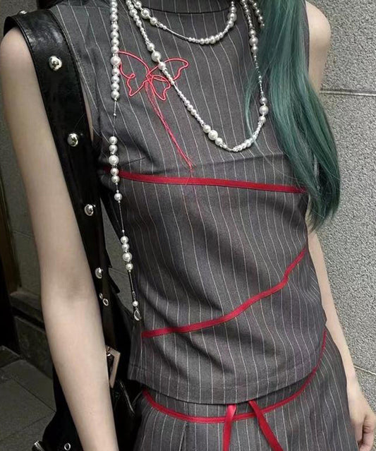 Chic Silk Stainless Steel Pearl Lariat Necklace QJ015