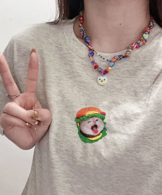 Chic Black Cats Shell Beads Double Layer Pendant Necklace QU013