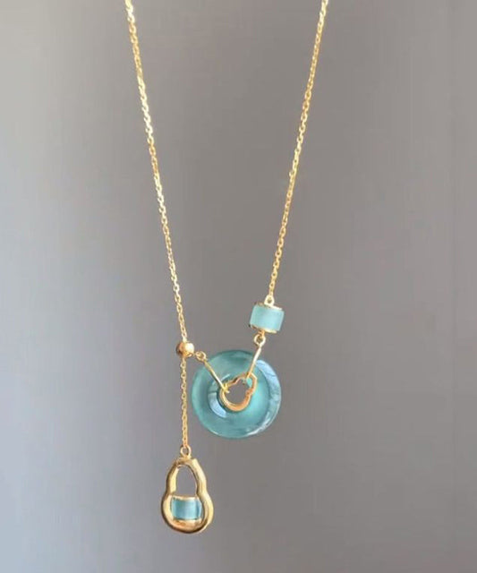Fashion Blue Sterling Silver Overgild Chalcedony Gourd Safety Buckle Pendant Necklace QU017