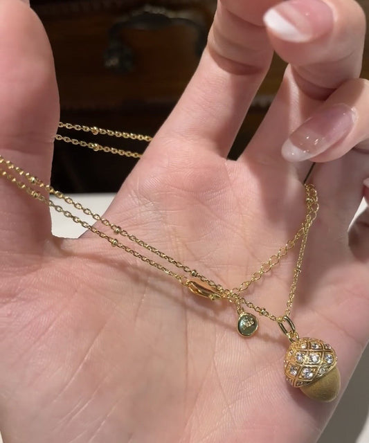 Fashion Gold Sterling Silver Overgild Zircon Pinecone Pendant Necklace QI078
