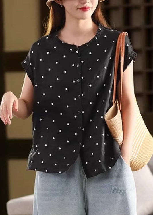 Shirt Coffee Ruffled Dot Vintage Summer Linen
