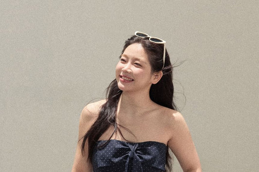 Dotted Peplum Tube Top / Plain Tie Front Cardigan / High Waist Wide Leg Jeans