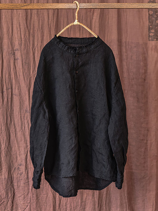 Women Autumn Vintage Button Raw-edge Linen Blouse AI1044
