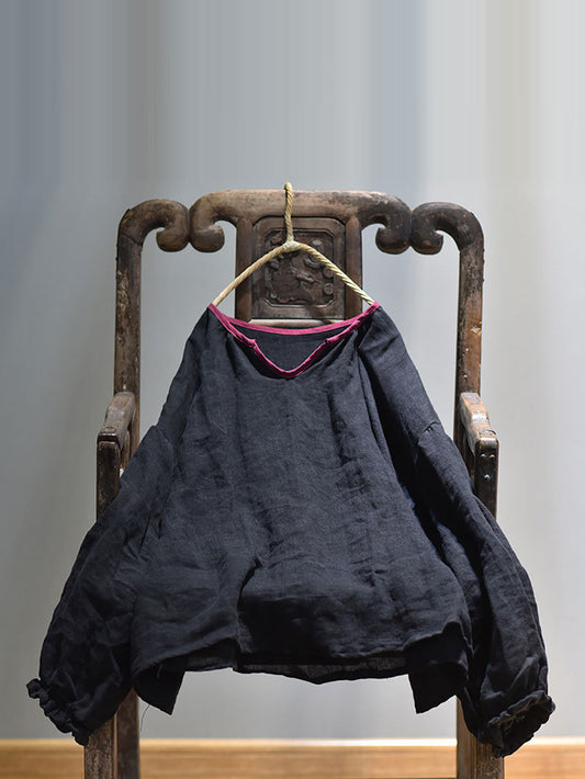 Women Spring Retro V-Neck Puff Sleeve Shirt GEM597