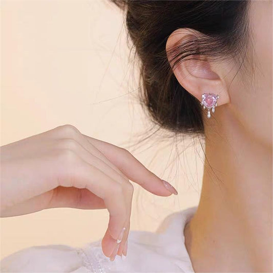 Crystal Ribbon Heart Dangle Earrings GEM004