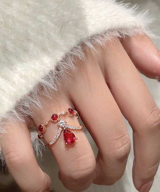Overgil Gem Silver Zircon Retro Stone Rings Sterling Red