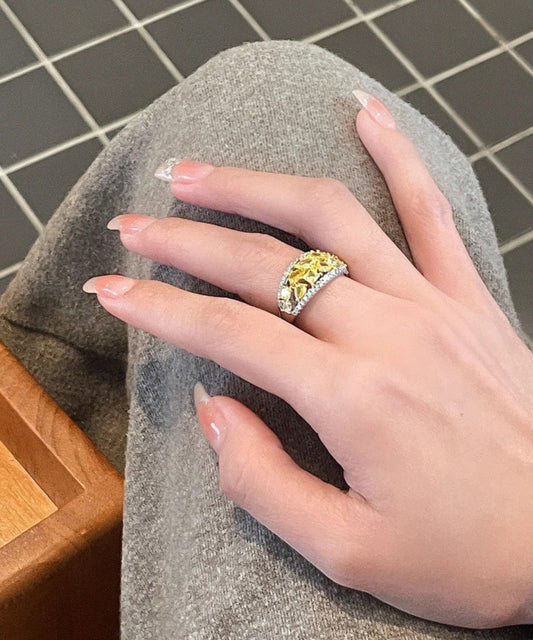Yellow Style Silver Overgild Chinese Rings Sterling Zircon