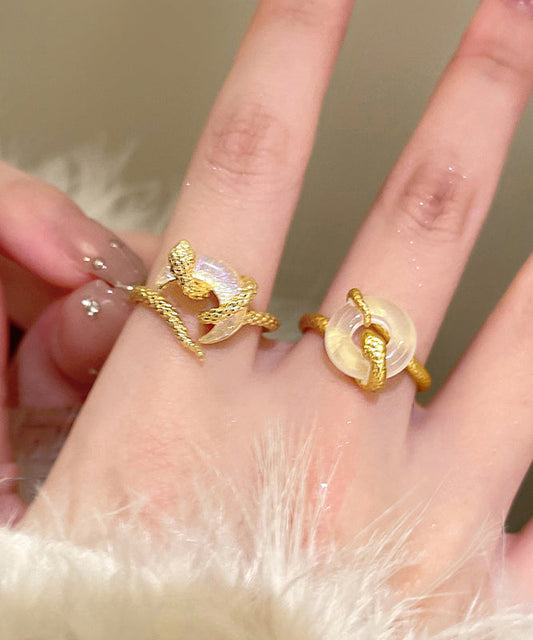 Vintage Rings Gold Serpentine Safety Copper Buckles Alloy
