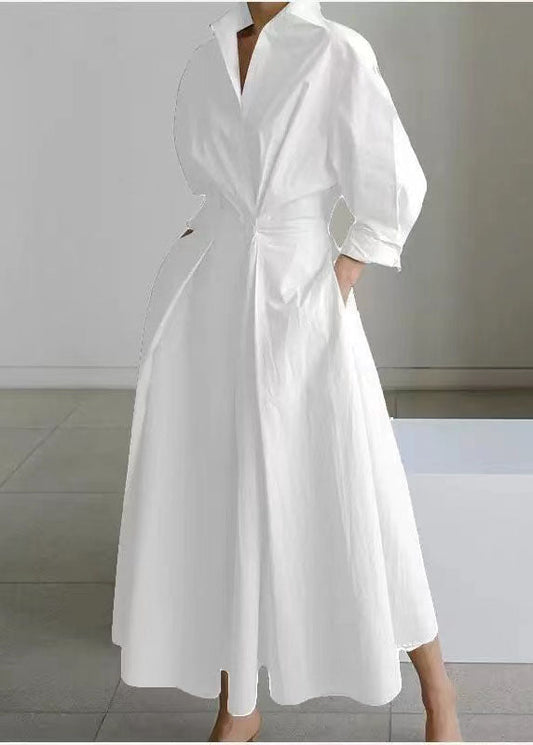 Ankle Cotton Spring Dress Casual Beige Shirt Print Oversized