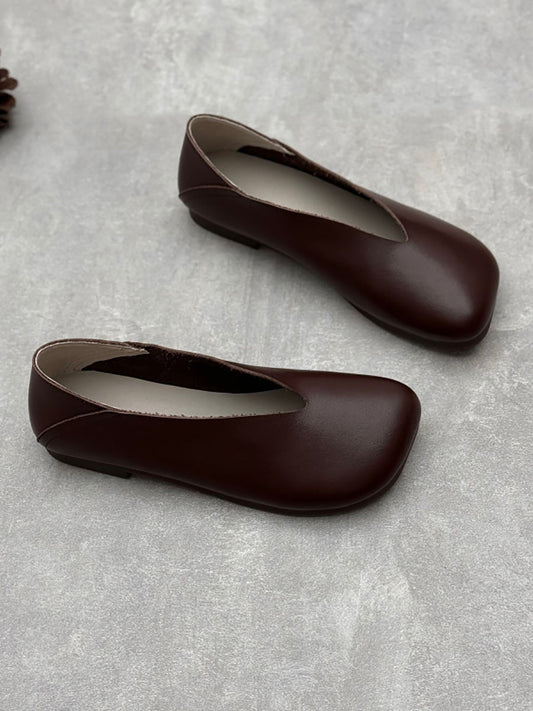 Women Casual Summer Solid Soft Leather Flat Shoes GEM030