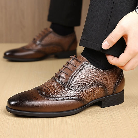 Crocodile Faux – Brown Oxford Pattern Leather Men's Shoes