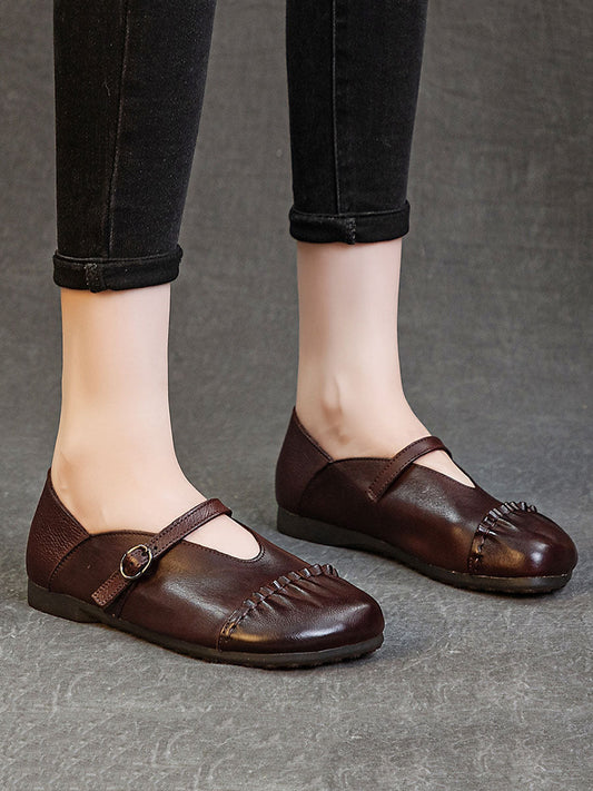 Women Vintage Genuine Leather Spliced Low Heel Shoes AS1003