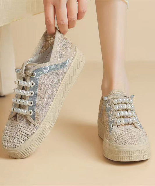 Casual Versatile Beige Black Flats Shoes Lace Up KJ038