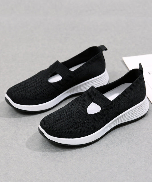 Comfy Splicing Flat Feet Shoes Black Breathable Mesh KJ063