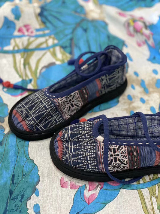 Women Summer Vintage Patch Embroidery Cotton Flat Shoes LL015