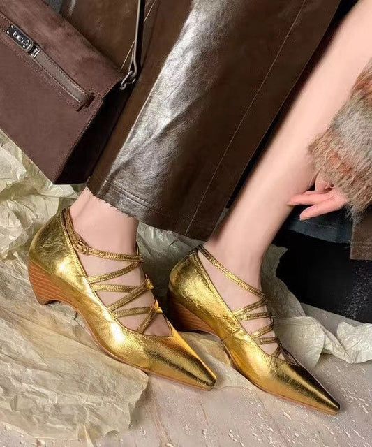 Wedge Heel Shoes Cross Strap Buckle Fashion Chocolate Hollow Out JJ031