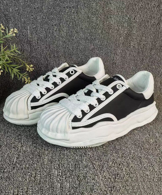 Casual Versatile Black Lace Up Platform Flat Shoes JJ035