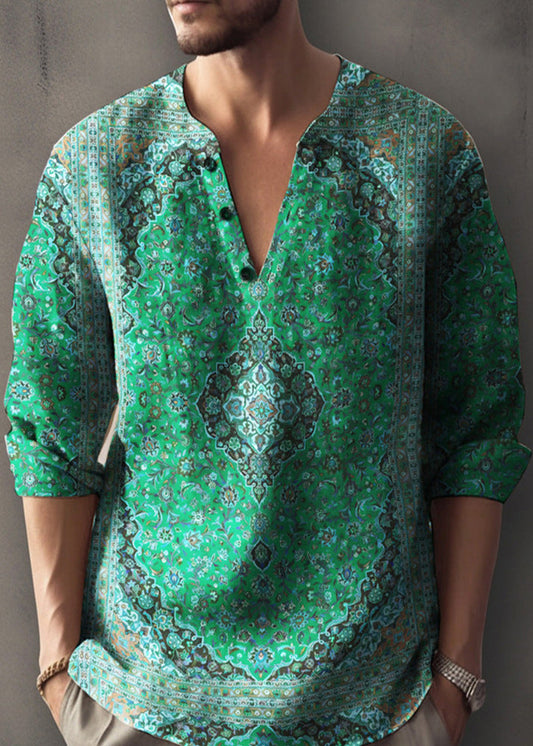 V White Men's Neck Half Print Cotton Shirts T Bohemian Oversized