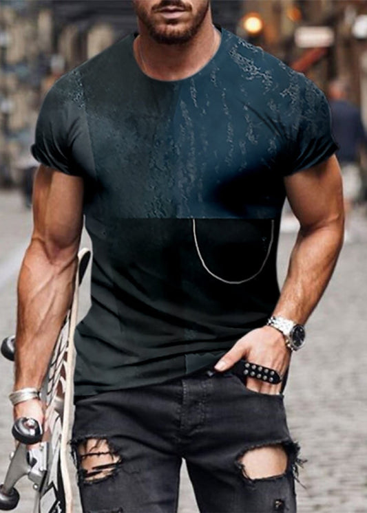 Neck O Shirts Embroideried T Cotton Black Men's Cool Summer