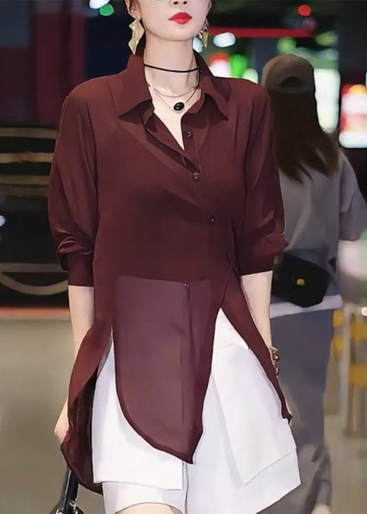 Shirts Patchwork Italian Chiffon Mulberry Asymmetrical Summer