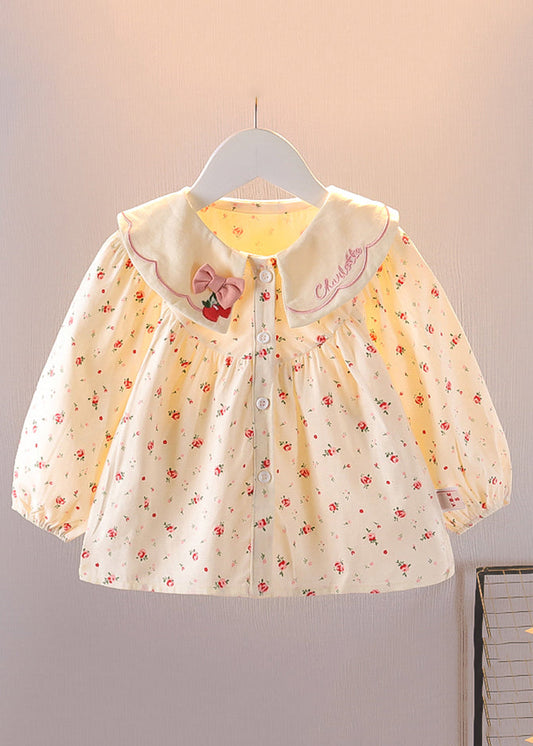 New Apricot Ruffled Button Print Cotton Kids Shirts Long Sleeve YU1042
