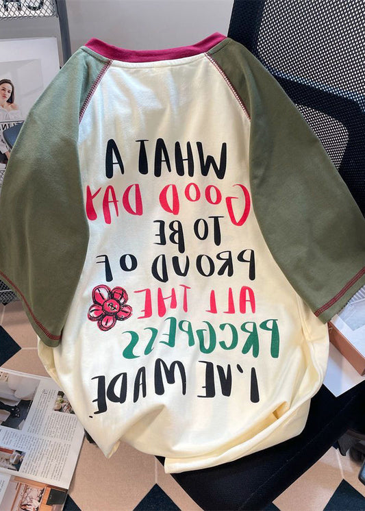 Casual Apricot O Neck Print Plus Size Cotton T Shirts Summer WW1026