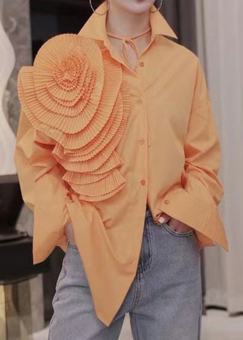 Champagne Solid Silk Tops Ruffled Summer TT1022