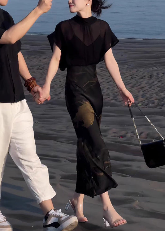Tops Lace Two Skirts Chiffon Pieces Up And Black Print Italian