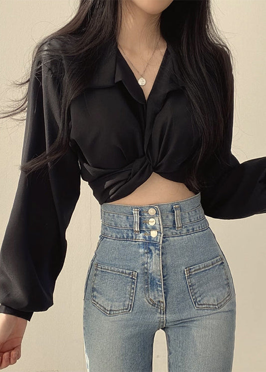 Collar Stand Chic Shirts Solid White Spring
