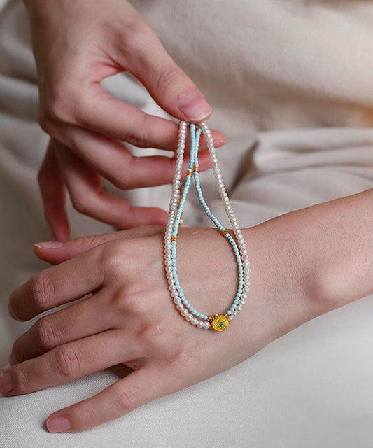 Colorblock Beading Alloy Handmade Double-Layer Pendant Pearl