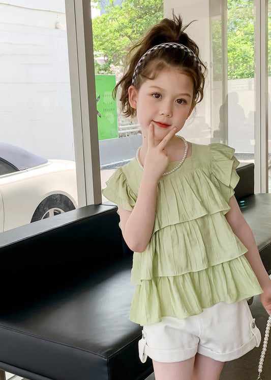 Süßes weißes Patchwork-Kinderhemd mit quadratischem Kragen für den Sommer SS1014