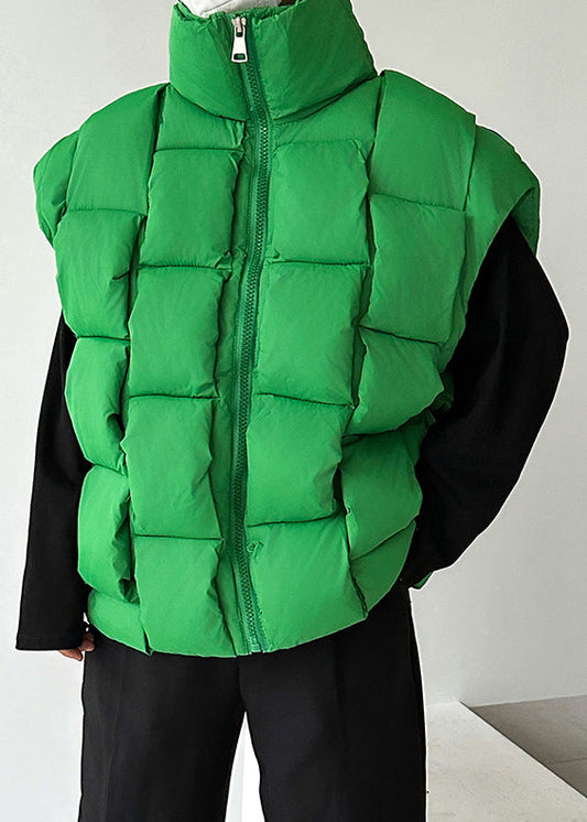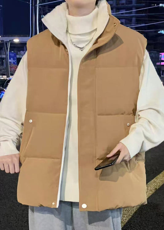 Simple Khaki Stand Collar Zip Up Cotton Filled Men Waistcoat Winter EQ035