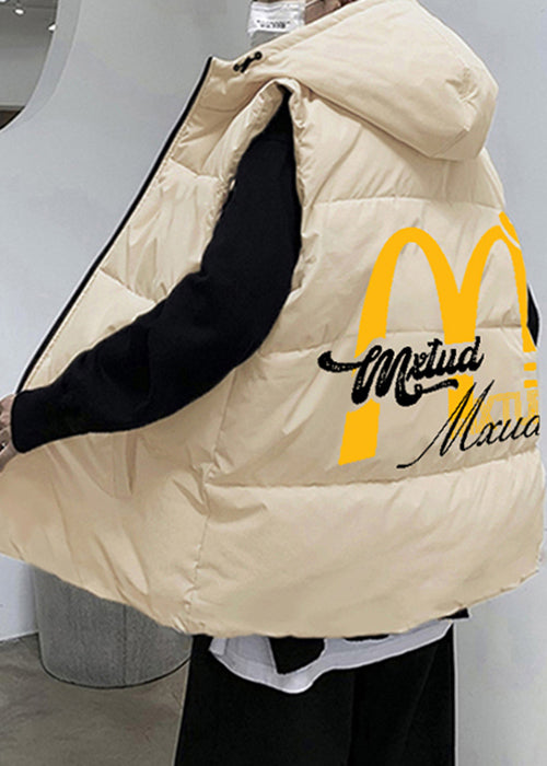 Modern Beige Zip Up Pockets Duck Down Men Waistcoat Sleeveless EQ042