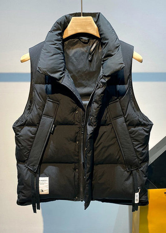 French Black Stand Collar Zip Up Cotton Filled Men Waistcoat Sleeveless EQ025