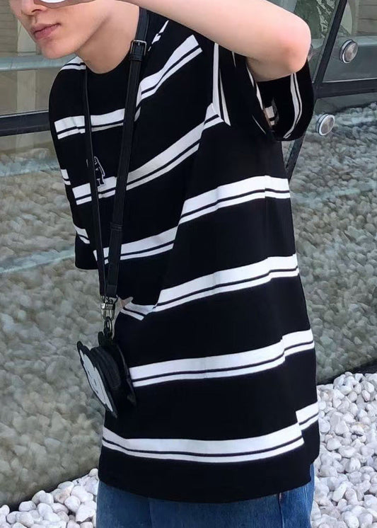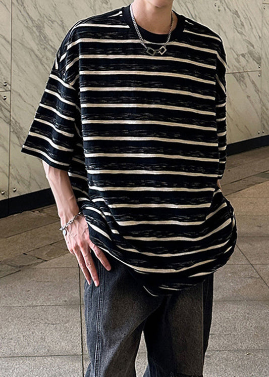 Plus Size Grün O Hals Gestreift Baumwolle Herren T Shirt Designer Sommer QH010