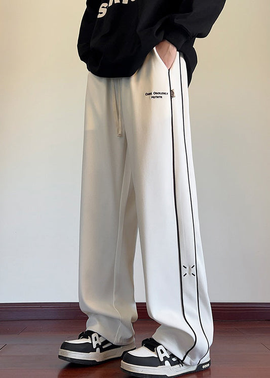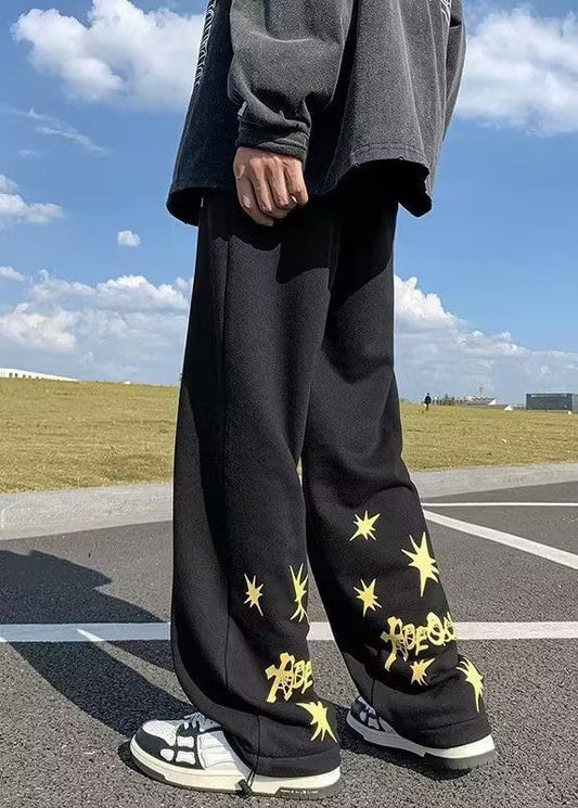Neue schwarze Cordhose mit Stickereien und elastischer Taille für Herren mit weitem Bein, Herbst WA049