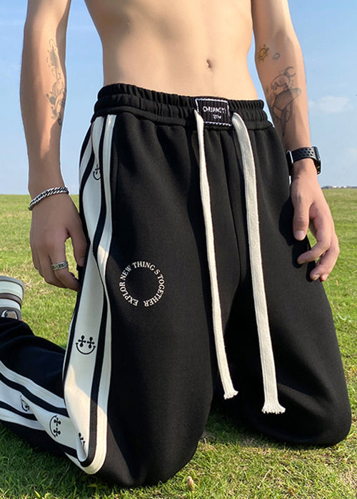 Neue schwarze bestickte Patchwork-Baumwollhose für Herren im Herbst WA048