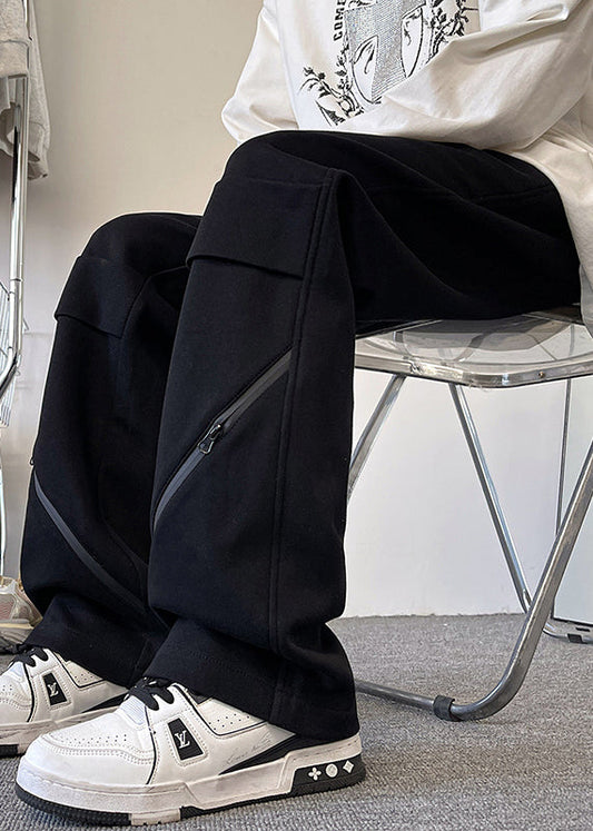 Schwarze Taschen, solide Baumwolle, Herbst-Herrenhose, elastische Taille WA047