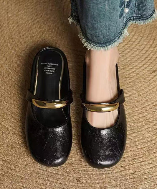 Shoes Buckle Leather Splicing Cowhide Flat Feet Retro Green Strap