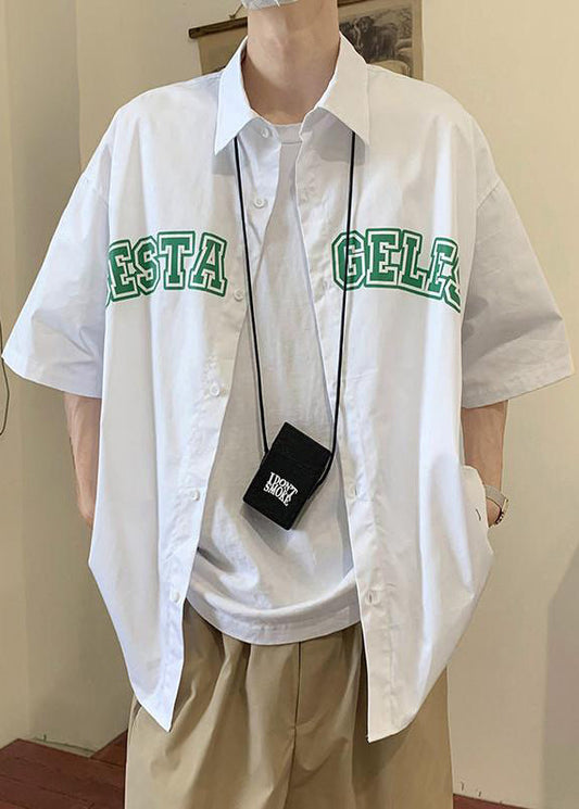 Summer Shirts Peter Letter Collar Blue Cotton Mens Loose Pan