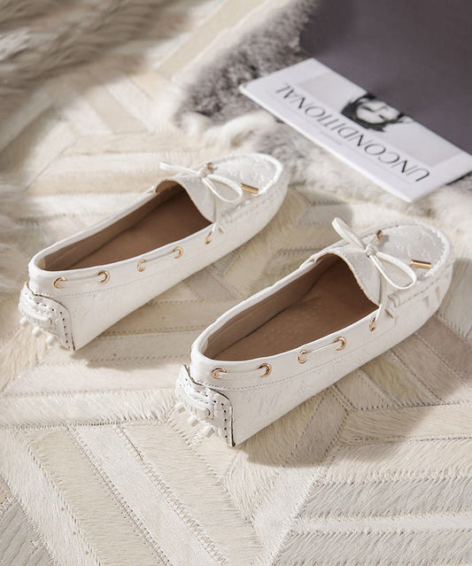Faux Splicing Loafers French Beige Leather Bow Penny