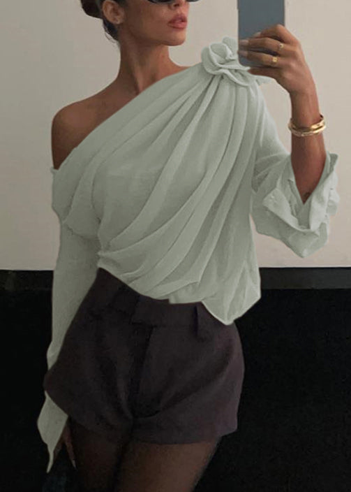 French White Peter Pan Collar Versatile Silk Shirts Spring YZ025