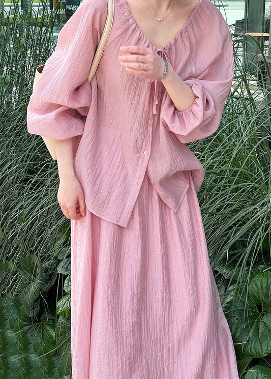 New Purple O-Neck Wrinkled Cotton Two Pieces Set Spring YZ019