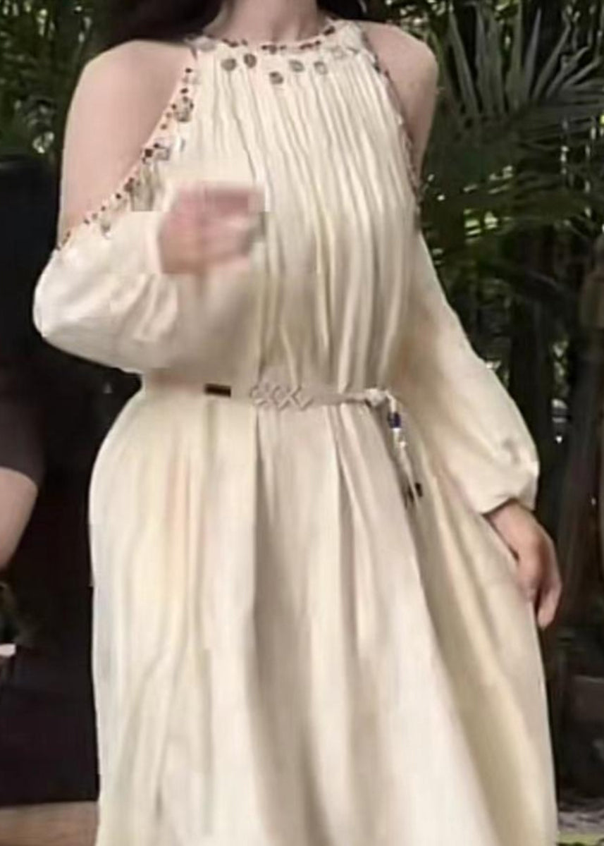 Apricot Bohemian Lantern Silk Cold Sleeve Shoulder Sequins Long