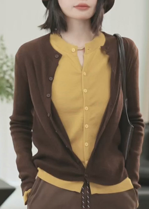 Chic Purple O-Neck Button Fake Two Pieces Cotton Knit Sweater Winter RD018
