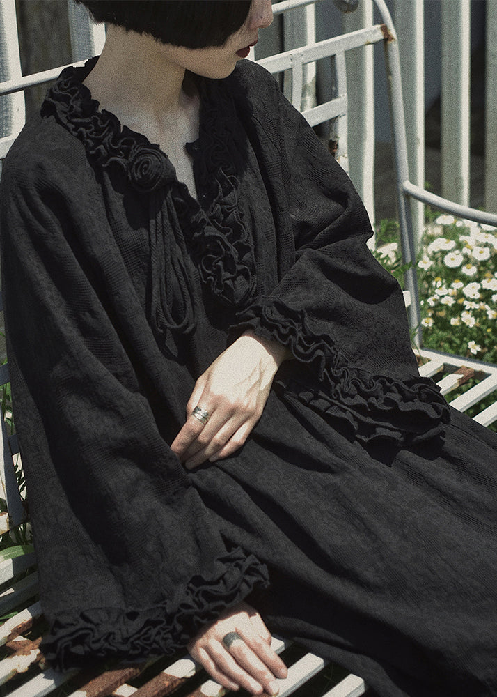 Design Black Ruffled Dress Original Cotton Patchwork Spring