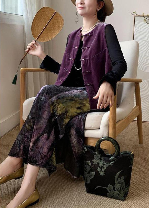 Fitted Purple Tie Dye Side Open Silk Velvet Skirts Spring YK002